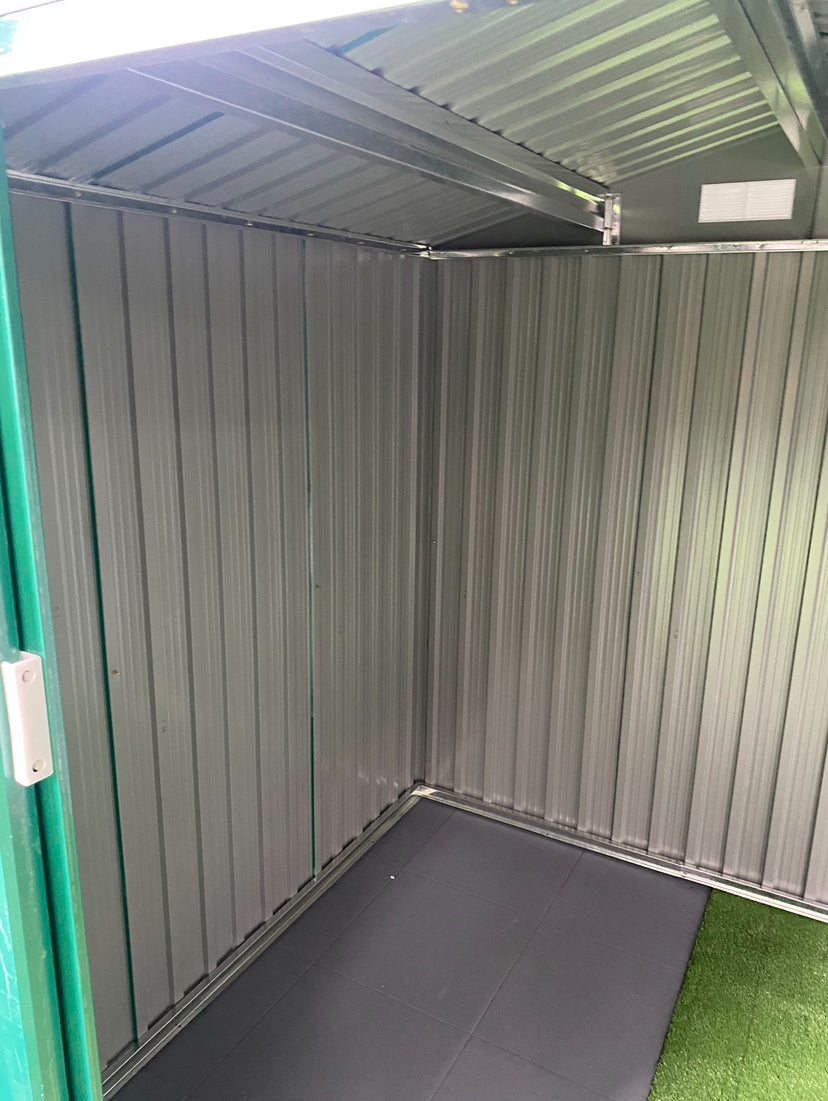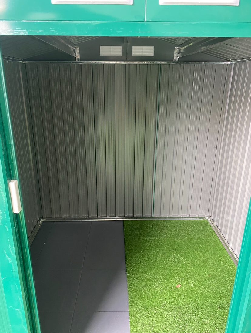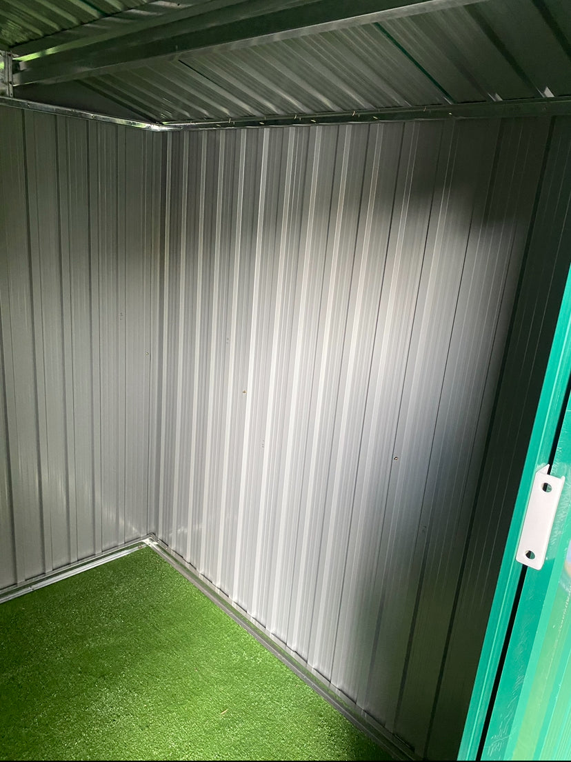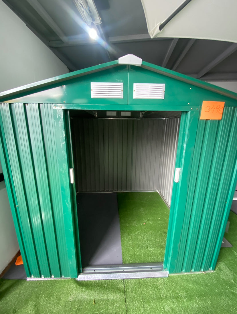 COBERTIZO CHAPA DE ACERO GALVANIZADA DE ACERO COLOR VERDE OSCURO DOS PUERTAS DE CORREDERA